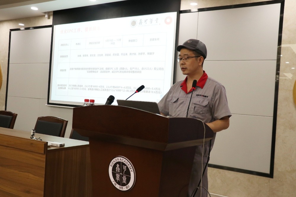 為推進落實在鑫可20周年慶典上發布的“反浪費、降成本”行動方案,2023年7月5日晚,公司在鑫可學堂舉行了“反浪費,降成本”十大課題發布會暨《IE八大浪費》培訓活動。公司常務副總經理馬強、副總經理兼經營管理委員會副主任陳光耀、副總經理龔峰、財務總監郭蓮芳、行政總監黃建宇、各部門負責人及各降本課題組成員近60人參加了本次發布會,副總經理陳光耀主持了本次發布會。